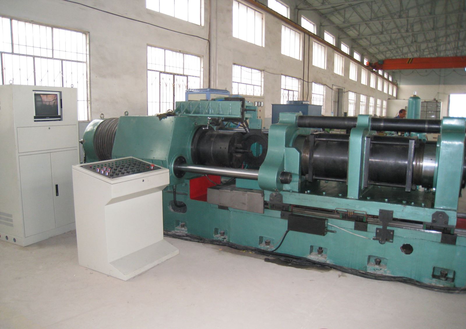 ● 主軸箱采用兩個單列圓柱滾子軸承的結構方式,具有旋轉精度高的優(yōu)點,同時在主軸箱中設置兩個推力調心滾子軸承, 一個采用固定安裝方式,另一個采用平衡油缸活動安裝的獨特結構方式,來平均承載摩擦與頂鍛的軸向力,使用壽命提高數(shù)倍。