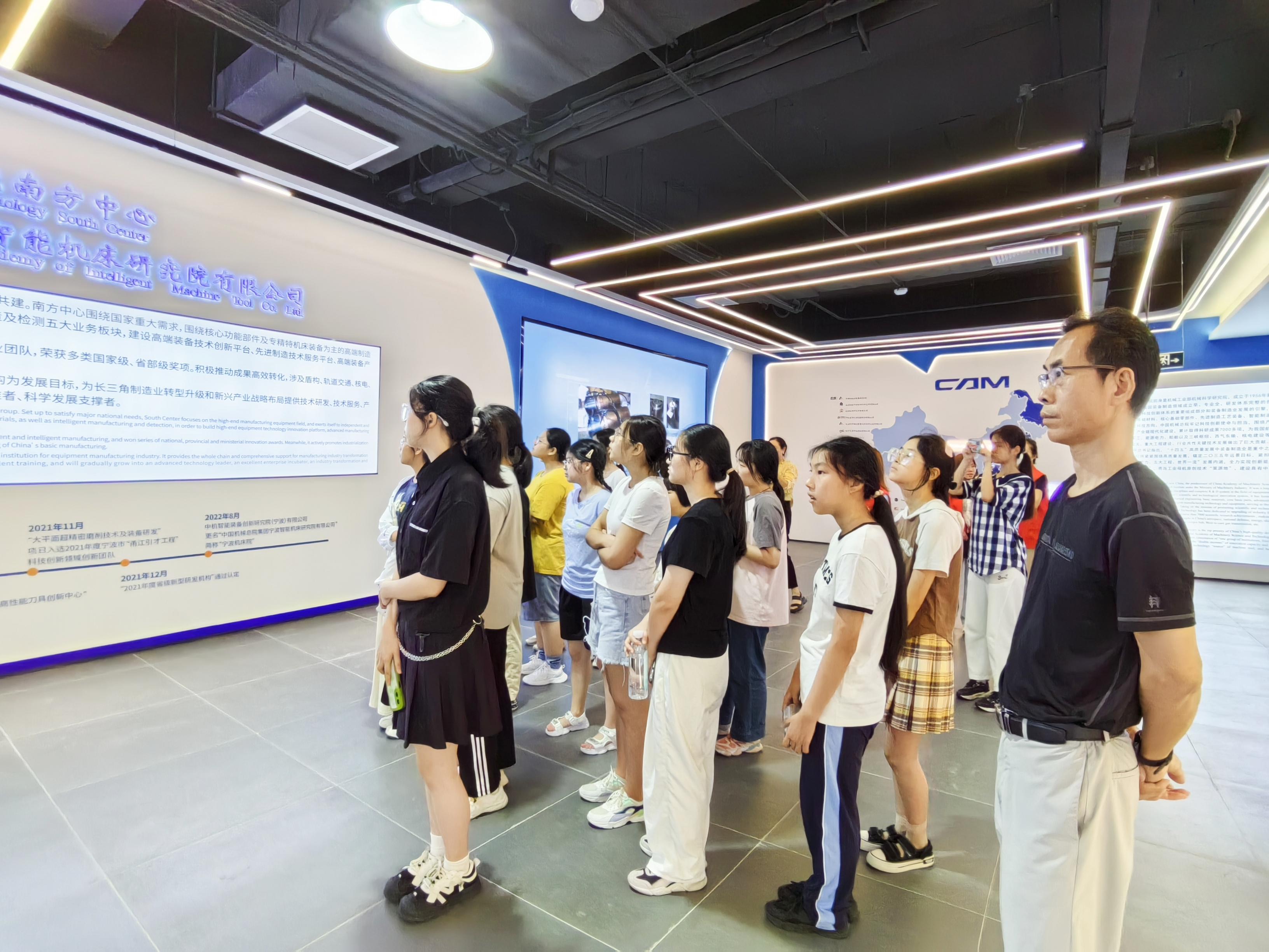 這次活動,通過“動靜結合、交流互動”等方式展開,在參觀公司展廳,讓學習了解寧波機床院的發展、建設歷程、成果成就,了解作為國資央企服務國家發展大局的使命擔當;在參觀實驗室,多角度、全方位了解科研創新、新先技術發展等。在交流環節,2位外國專家和1位博士分享了如何成長成才的經驗,鼓勵學生提升自信、開闊眼界,努力學習;分享后,學生與專家、博士進行了互動交流。