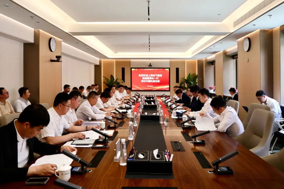 6月6日,上海電氣集團黨委書記、董事長吳磊一行到訪集團,集團黨委書記、董事長王德成予以熱情接待,集團黨委副書記、總經理孟祥宇主持會議。